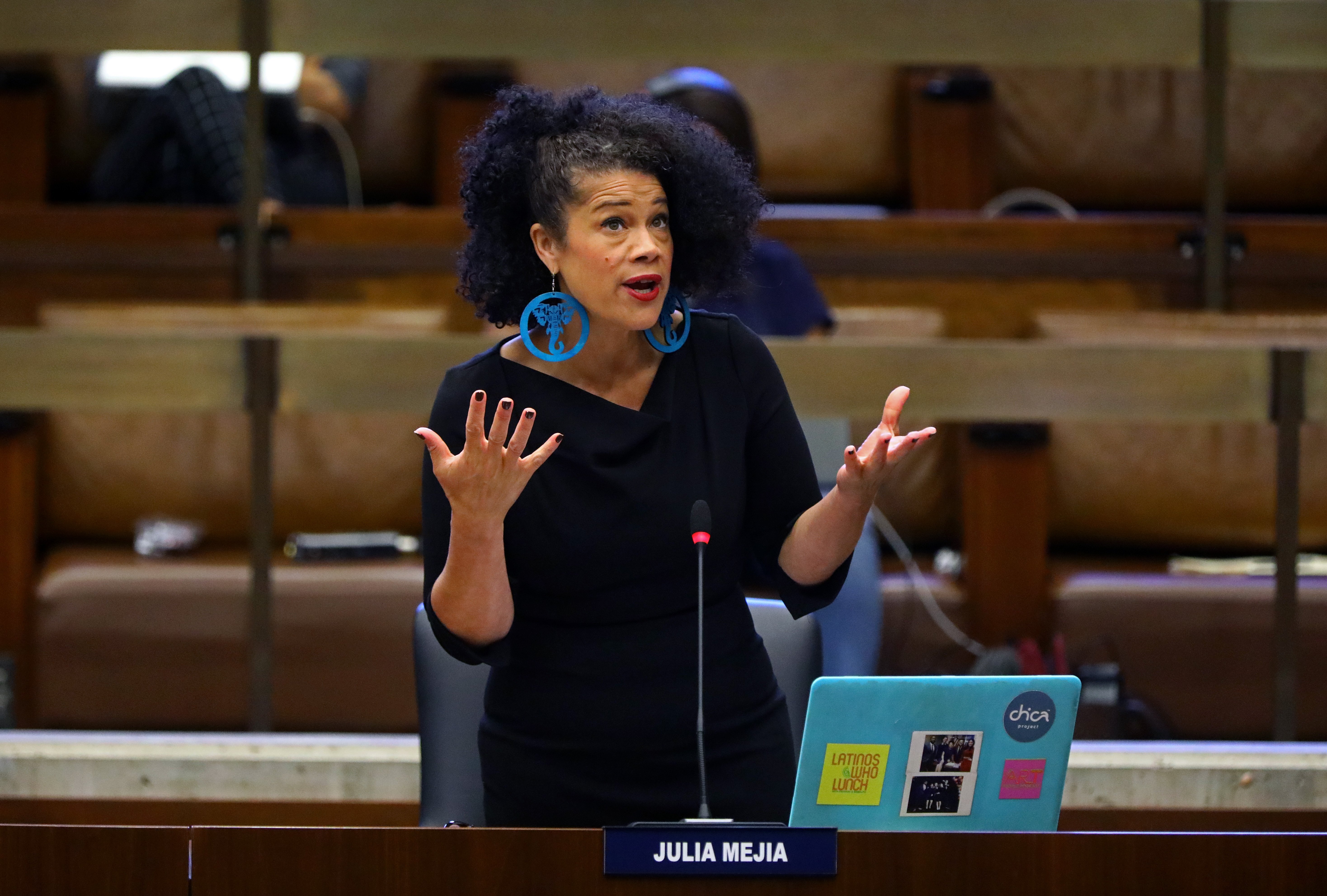Councilor At-Large Julia Mejia said the Boston Police Department should stop using its cell site simulator, or “stingray,” which can track real-time cell phone location, until a public hearing can be held to learn more about the use of the device and how it was purchased. Critics have suggested the technology could threaten constitutional rights, and members of Congress have called for measures to restrain its use.