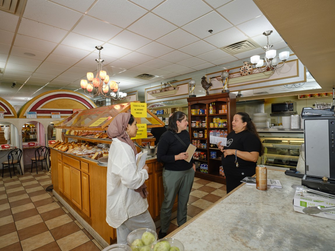Su primera parada fue un centro comercial al lado de Madison que tiene una panadería mexicana, La Concha, y tiendas de comestibles latinas. Los obreros de la industria lechera van allí para enviar giros a casa y comprar comidas típicas como nopales y platanitos. Los ojos de la encargada de la panadería se llenaron de lágrimas cuando vio el folleto físico. Acarició suavemente la copia y dijo a Sanchez y Jameel que conocía a Jefferson y a su padre. Ya había leído nuestro reportaje, pero claramente la experiencia de ver una copia física del folleto tuvo un impacto, y pidió si podía quedarse uno para ella.