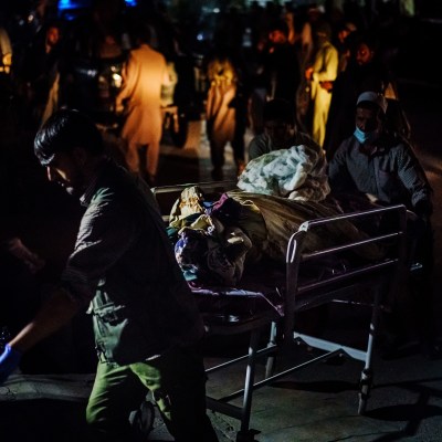 The ditch was a living nightmare. Human flesh hung from the wall across from the gate. Corpsmen hurriedly operated on Americans bleeding into the dirt. Marines streamed in and out of the airport, using riot shields to carry wounded service members and civilians.