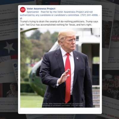 Other media outlets have also identified Facebook political ads that were less than transparent. The New York Times reported in October on ads in a Virginia congressional race that identified the funder only as “A freedom loving American Citizen exercising my natural law right, protected by the 1st Amendment and protected by the 2nd Amendment.” CNN found ads on Facebook from “Memes that are right” and “Crush Cruz” groups, without further identifying the sponsors.