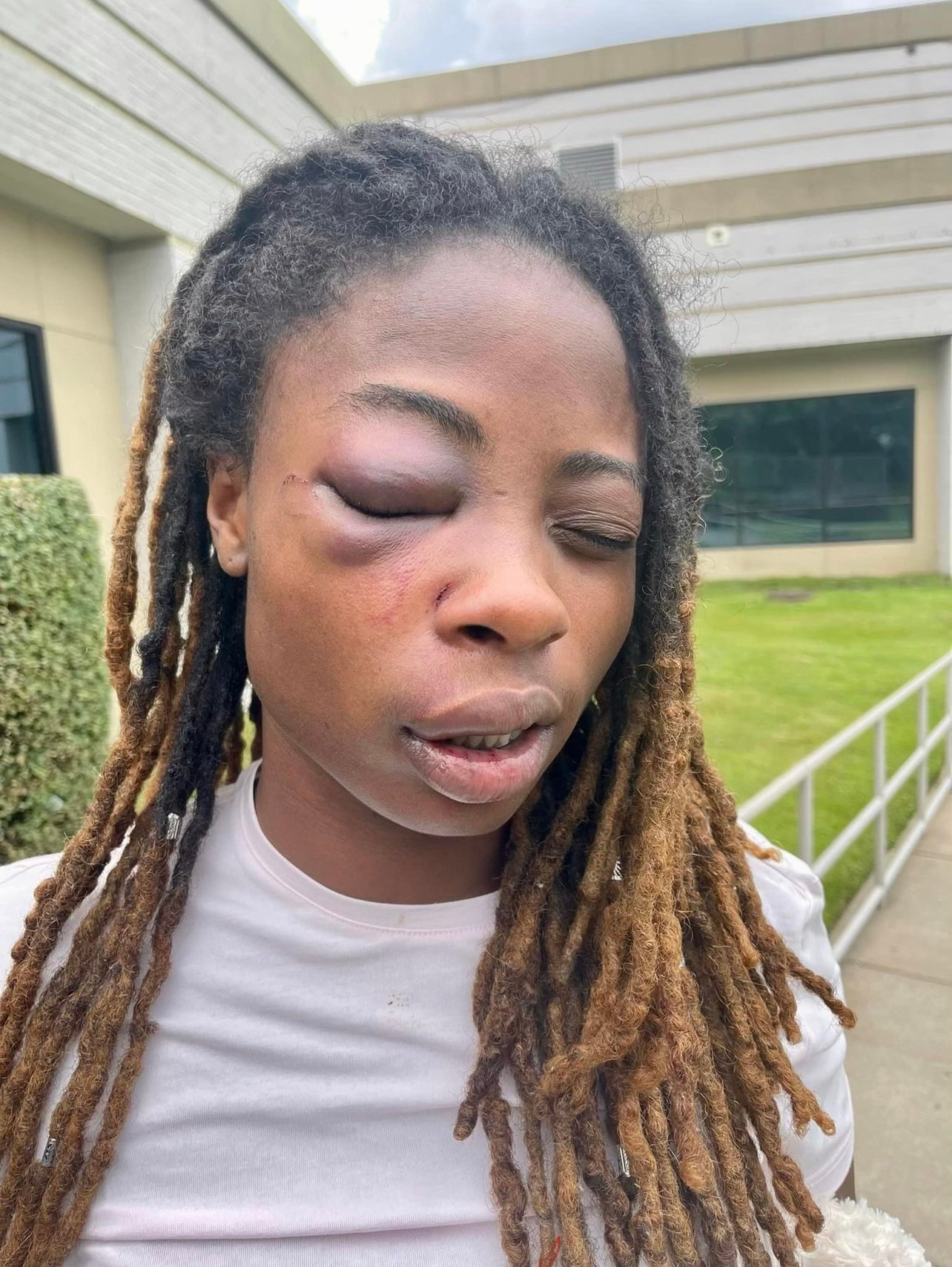 Jones-Mbuyi went to the window with her phone in her hand. She tried to take a photo of Leggett like the police had asked. But she was shaking too hard. Her phone kept falling to the floor.