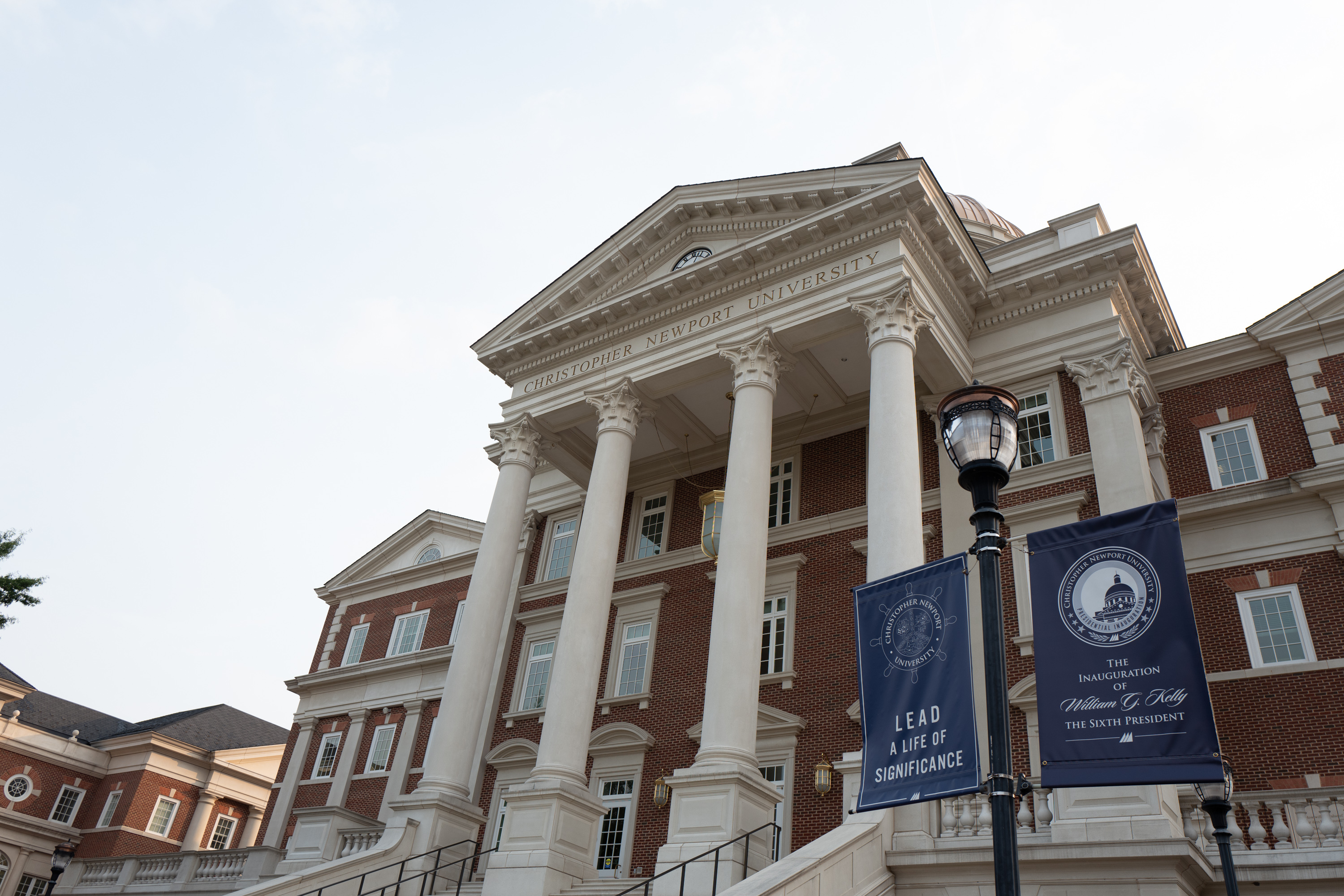 A statue of jaunty, bearded Christopher Newport, wearing a cavalier hat and leaning on a sword, looms at the entrance to his namesake university. Behind the mariner who transported settlers to the Virginia Colony in the early 17th century lies a campus of brick Colonial and Georgian-style buildings named after public officials, university administrators and wealthy donors.