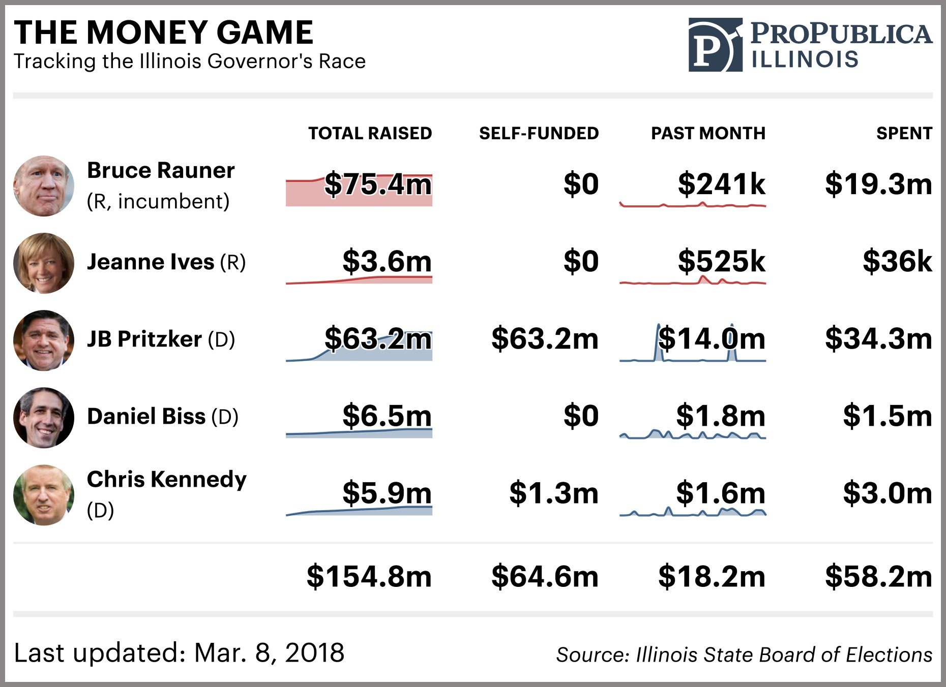If you just look at the first version, Rauner isn’t self-funded.