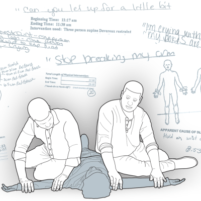 The ProPublica Illinois-Tribune investigation documented more than 35,000 seclusion and restraint incidents involving students in 100 school districts over a 15-month period beginning in the fall of 2017. Although state law then allowed seclusion and restraint when students were in danger of harming themselves or others, reporters found that in one out of every three incidents of seclusion, school workers hadn’t cited a safety reason; for incidents of physical restraint, the ratio was one in four.