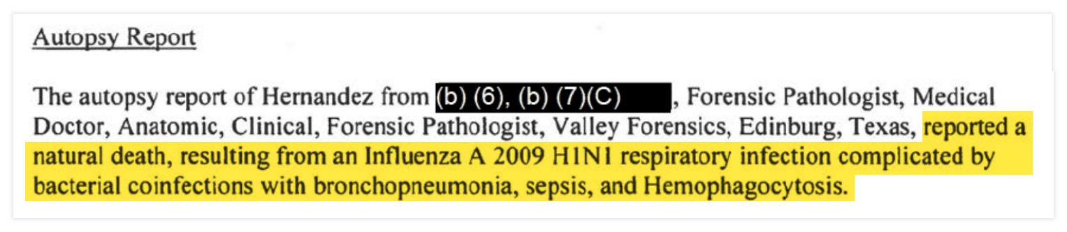 Dr. Judy Melinek, a San Francisco-based pathologist who has reviewed Hernandez’s autopsy report and Border Patrol medical records, said she believes his immune disorder was caused by his untreated illness.