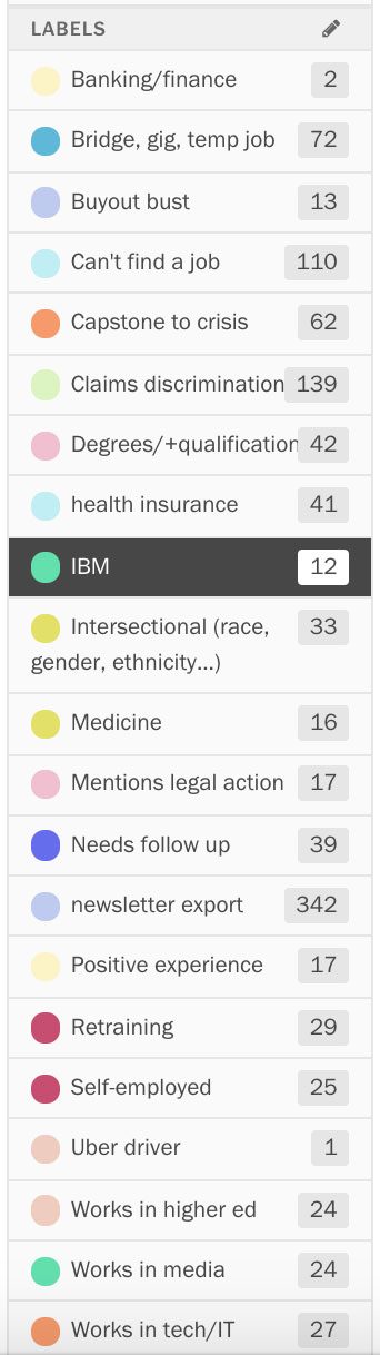 We realized that we had been pointed toward an angry, sad and motivated group. The older ex-IBM workers we called were trying to figure out whether their own layoffs were unique or part of a larger trend. And if they were part of a larger trend … how many people were affected?