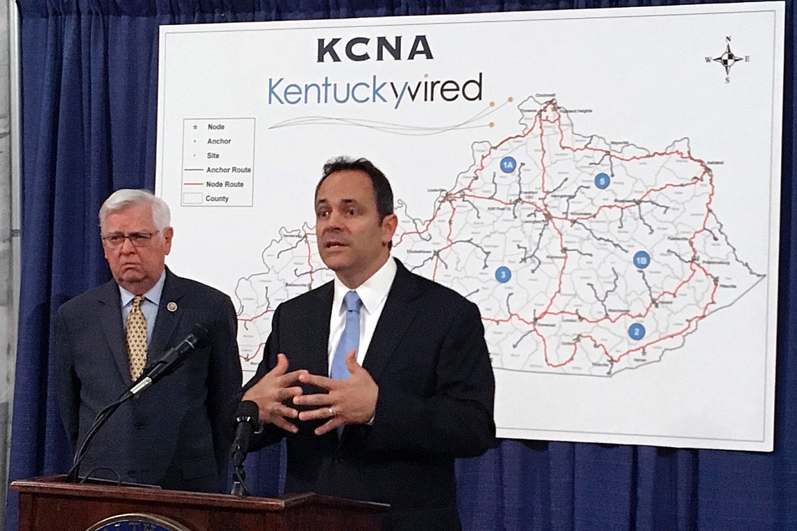 Efforts to wire up individual communities have sprouted up for years in individual Kentucky communities. Eastern Kentucky’s Peoples Rural Telephone Cooperative, for example, installed high-speed fiber-optic lines within reach of every home and business in Jackson and Owsley counties using federal stimulus money made available in 2010. But a statewide version wasn’t introduced until Kentucky solicited bids for the KentuckyWired public-private partnership in July 2014. A team led by Macquarie, an Australian investment bank, won the bid in December 2014. Negotiations continued into the closing weeks of the administration of former Gov. Steve Beshear until a final deal was signed in September 2015.