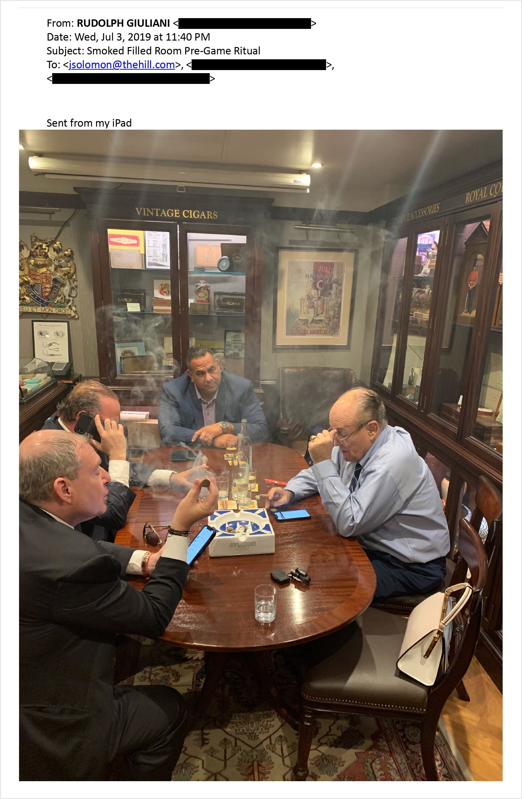 Giuliani ended up working with a pair of émigré business partners, Lev Parnas and Igor Fruman, to make contacts in Ukraine with corrupt and questionable prosecutors, in an effort to turn up “dirt” on Joe Biden’s son, Hunter Biden, who had served on the board of a Ukrainian energy company. Giuliani also worked to sow doubt about the ledger that had revealed the secret payments to Manafort, meeting with his buddies in a literally smoke-filled room.