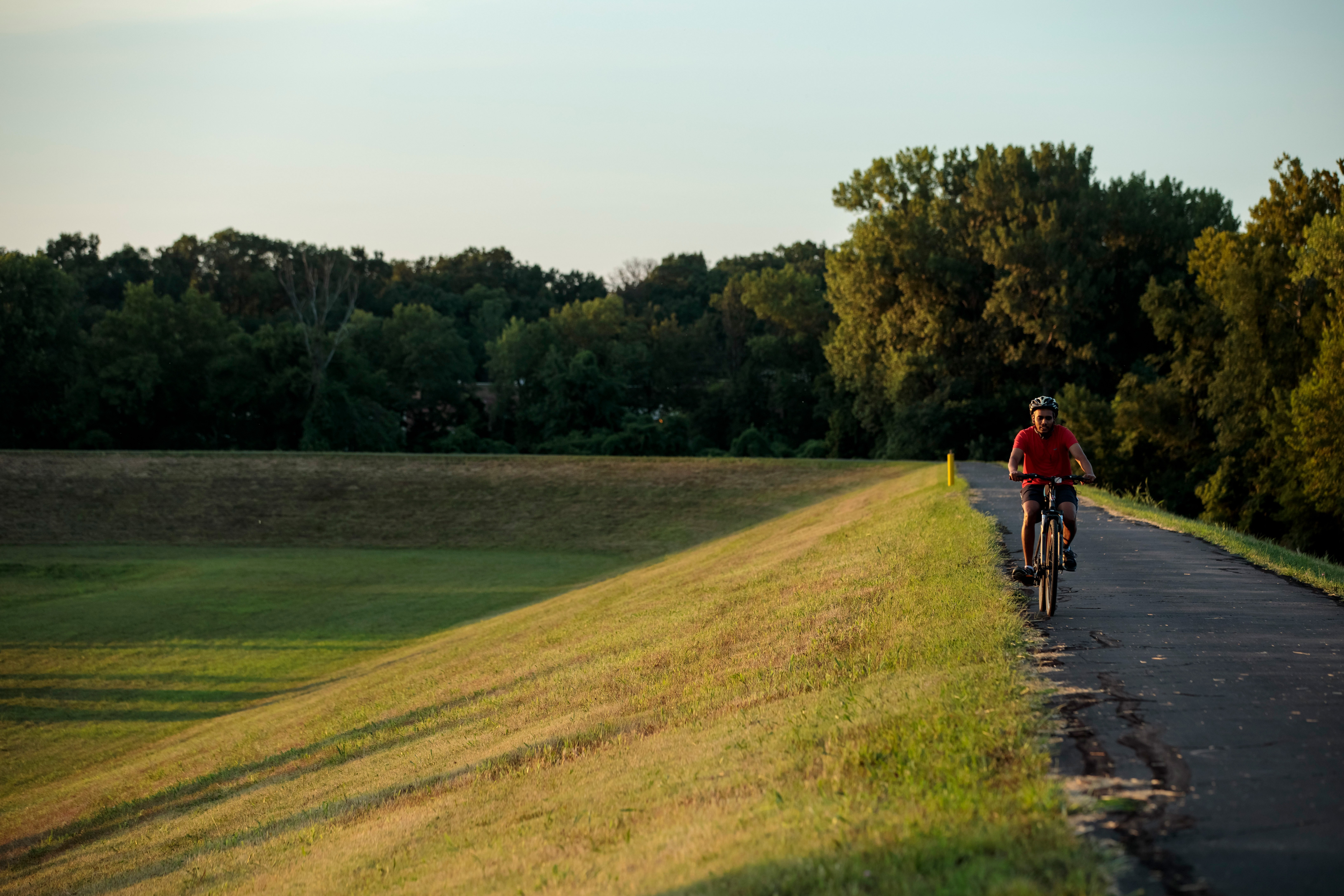 From Valley Park, the levee’s slope resembles the inside of a grassy bowl, around 20 feet tall. Water caught behind the levee is guided out of the city by a system of drain pipes. Steel gates let traffic in and out through several road and railroad crossings. When the Meramec begins to rise, the gates close and seal off Valley Park from the wall of water.