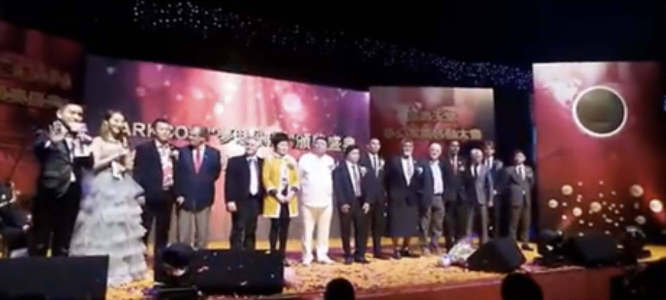 Calderón said in an email that he was invited through a speakers bureau to give a talk on sustainable development. The event included Asian participants who did not appear to speak English, Calderón said, and he had little interaction with them other than posing for photos.