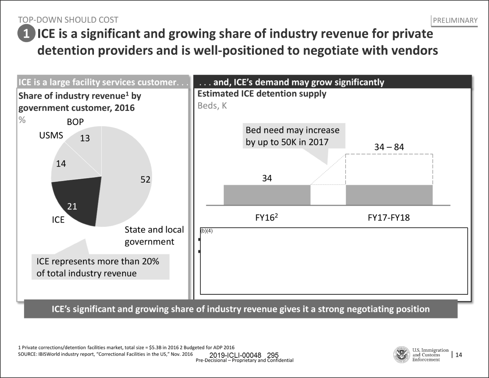 McKinsey’s slides also noted that the immigrant influx would give ICE growing clout with detention centers, underscoring the firm’s involvement in advising the agency on detention spending: “ICE is a significant and growing share of industry revenue for private detention providers and is well-positioned to negotiate with vendors.”