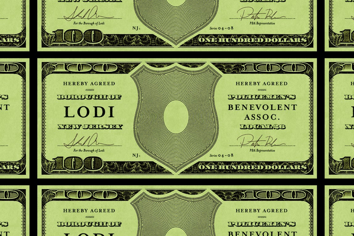 Cops doing extra duty jobs are a common sight in New Jersey. Private entities like construction firms and utility companies pay towns for an officer’s time, at rates that can top $100 per hour, which are written into police contracts, the Press and ProPublica found. The towns pass the money on to their officers. In 37 towns, the contract says the municipality takes a cut — Lodi gets 33%.