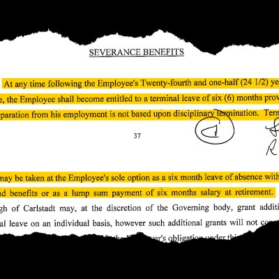 The borough of Carlstadt’s contract, effective from Jan. 1, 2020, to Dec. 31, 2024, provides retiring officers who have served at least 24.5 years with six months of “terminal leave,” taken as either six months of paid time off or “a lump sum payment of six months salary.”