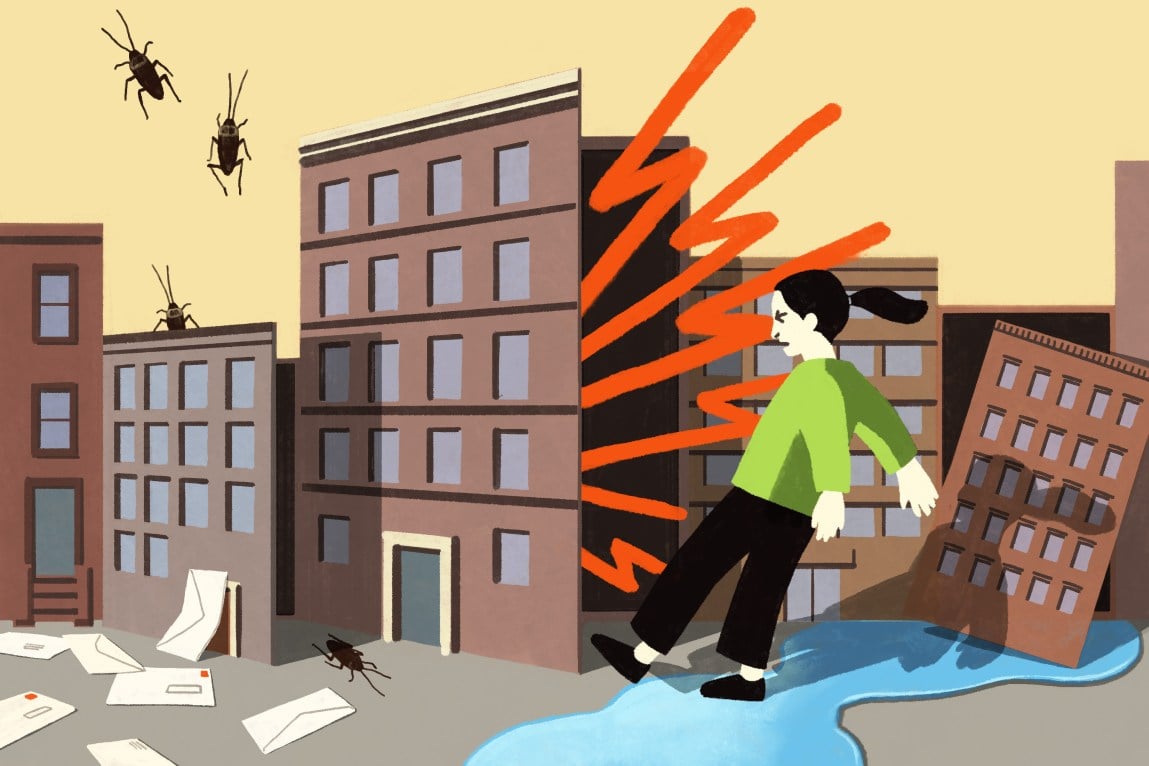 The unicorn turned out to be a pile of rotting meat in a trenchcoat. First my ceiling became waterlogged from my neighbor’s leaking radiator (while she was recovering from surgery). Then my radiator soaked the apartment of my downstairs neighbor (who was paying $3,000 a month even though there was no heat in her toddler’s bedroom). A feud between our landlord and the local post office ensured all of our mail was dumped onto the basement stairs, where it got stolen or buried under snow. When I could no longer use my radiator for fear of leaking water everywhere, the landlord suggested I deal with a historic cold snap by installing “extra thick curtains.” Once the weather warmed, a building down the block started hosting parties so loud they made my floorboards tremble until two in the morning.