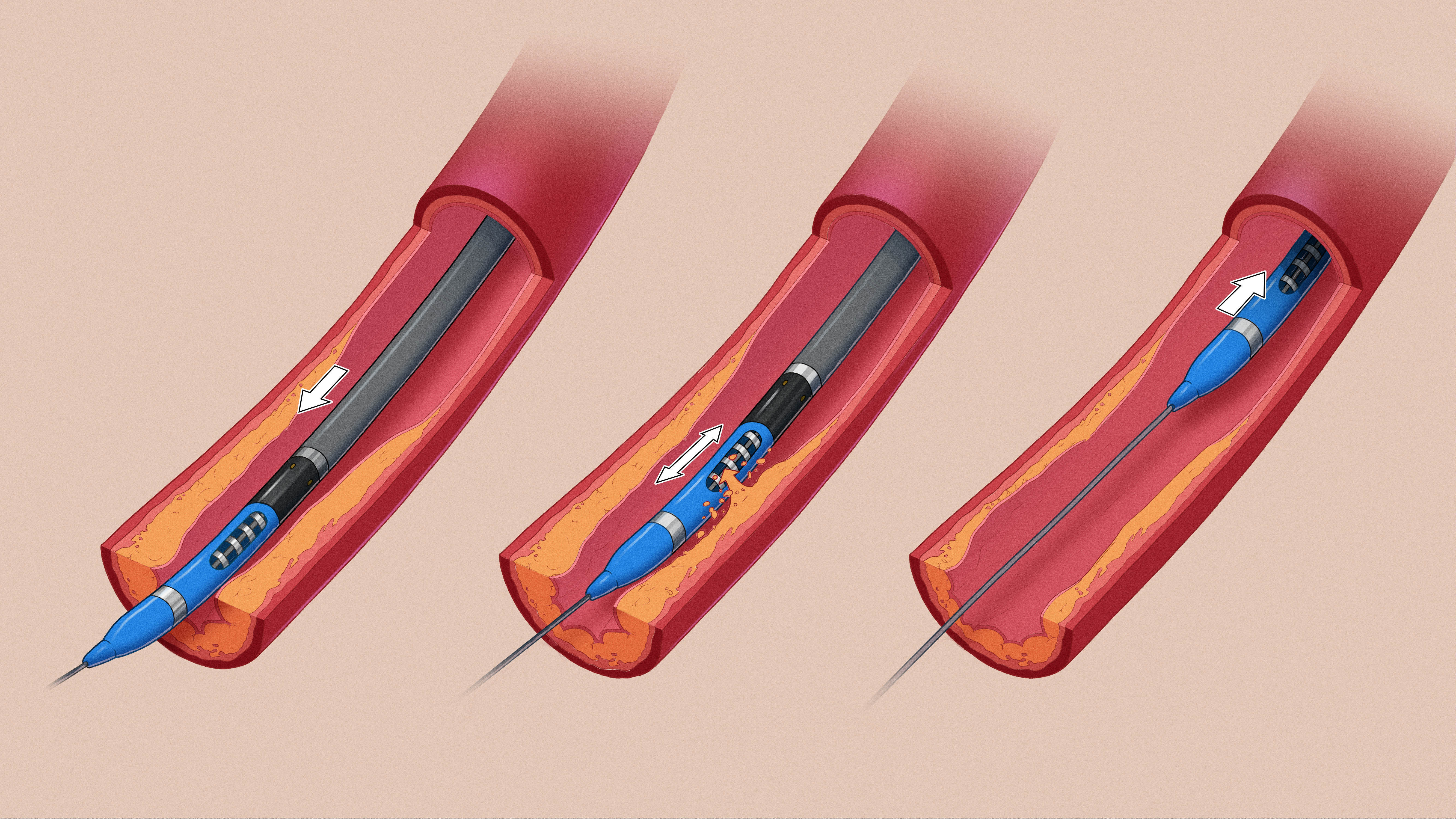 Atherectomy: A catheter, often capped with a blade or laser, is inserted into a blood vessel and removes plaque off its walls.