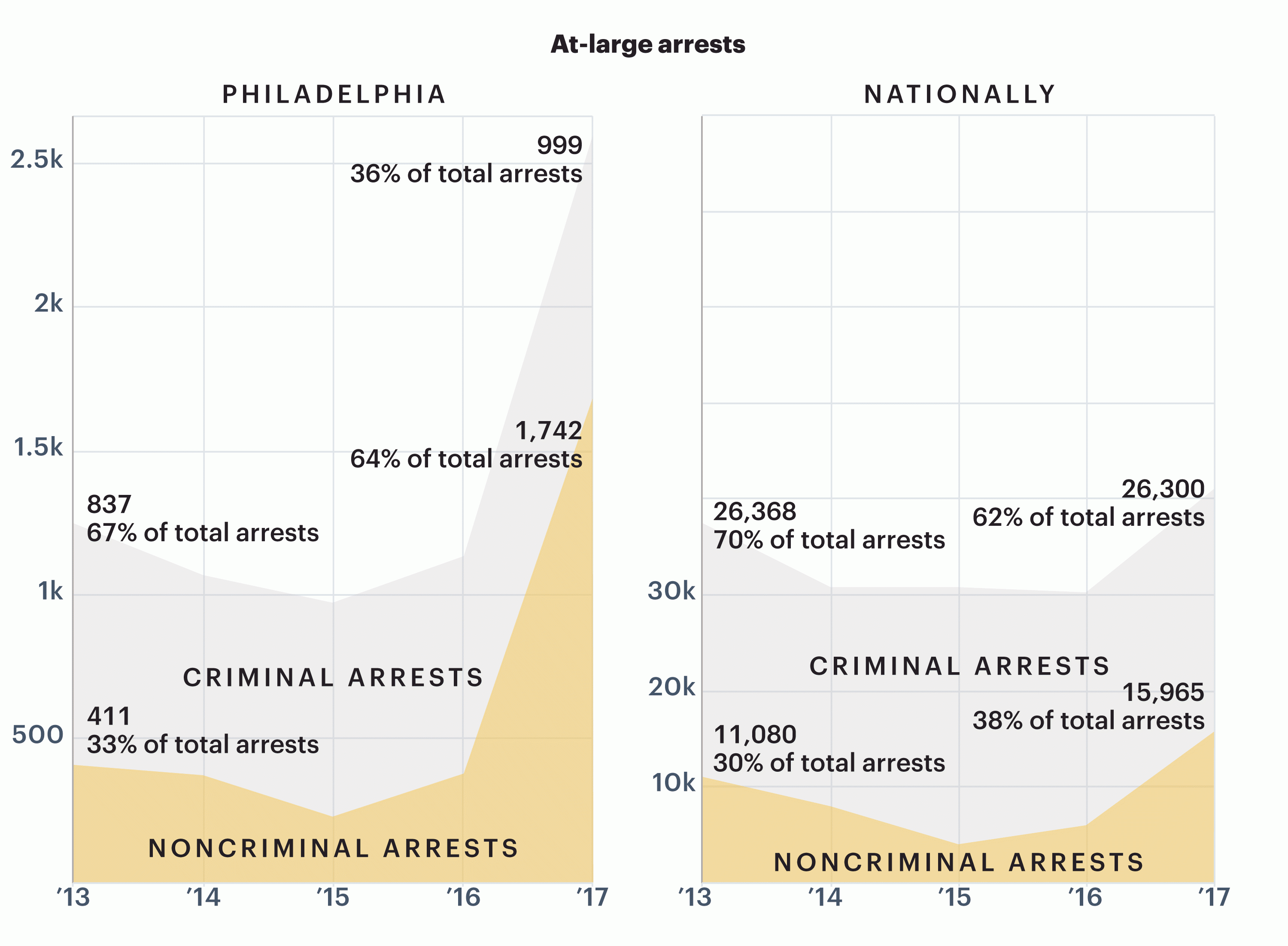 Still, noncriminal arrests did not soar equivalently in other sanctuary cities last year. A third of the arrests in the San Francisco ICE region, for instance, were immigrants without criminal convictions, compared with 64 percent for Philadelphia.