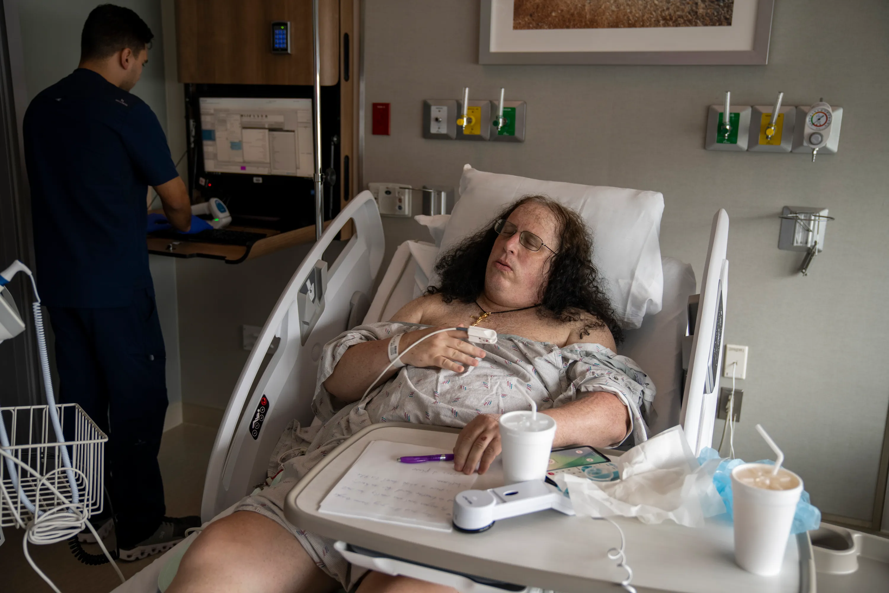 Edwards stopped using the device earlier this year and said his respiratory infections went away, but in April, he traveled to Florida to undergo a second surgery on his throat. As he waited in the hospital with his sister, he clutched a gold crucifix around his neck.