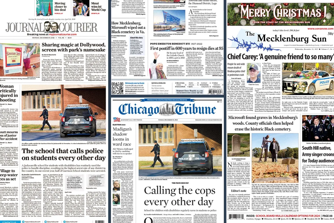 That’s why we were so pleased at the end of last year that two consequential stories — one about the arrest of children at an Illinois school, the other about digging up a historic Black cemetery in Virginia — appeared on the front pages of newspapers in the communities where the events happened.