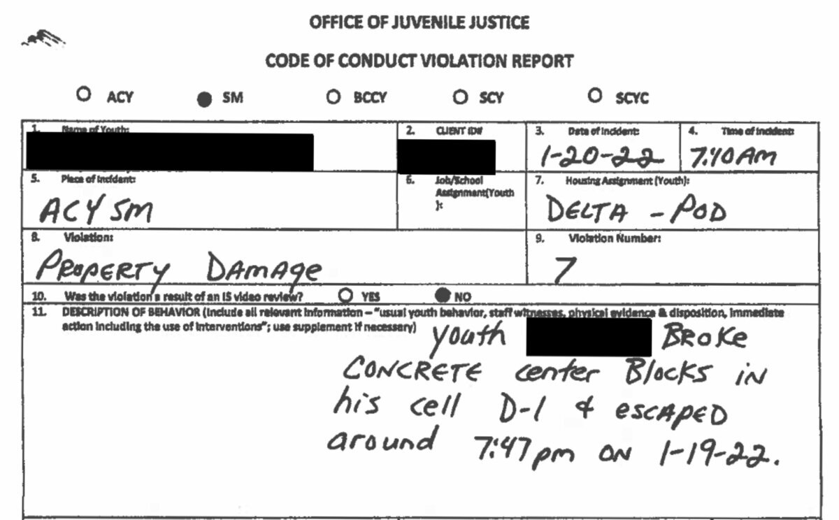 At least two of the teens in the facility harmed themselves so badly that they required medical attention. Some destroyed beds and shattered light fixtures, using the metal shards to hack holes in the cinder block walls large enough for them to escape.