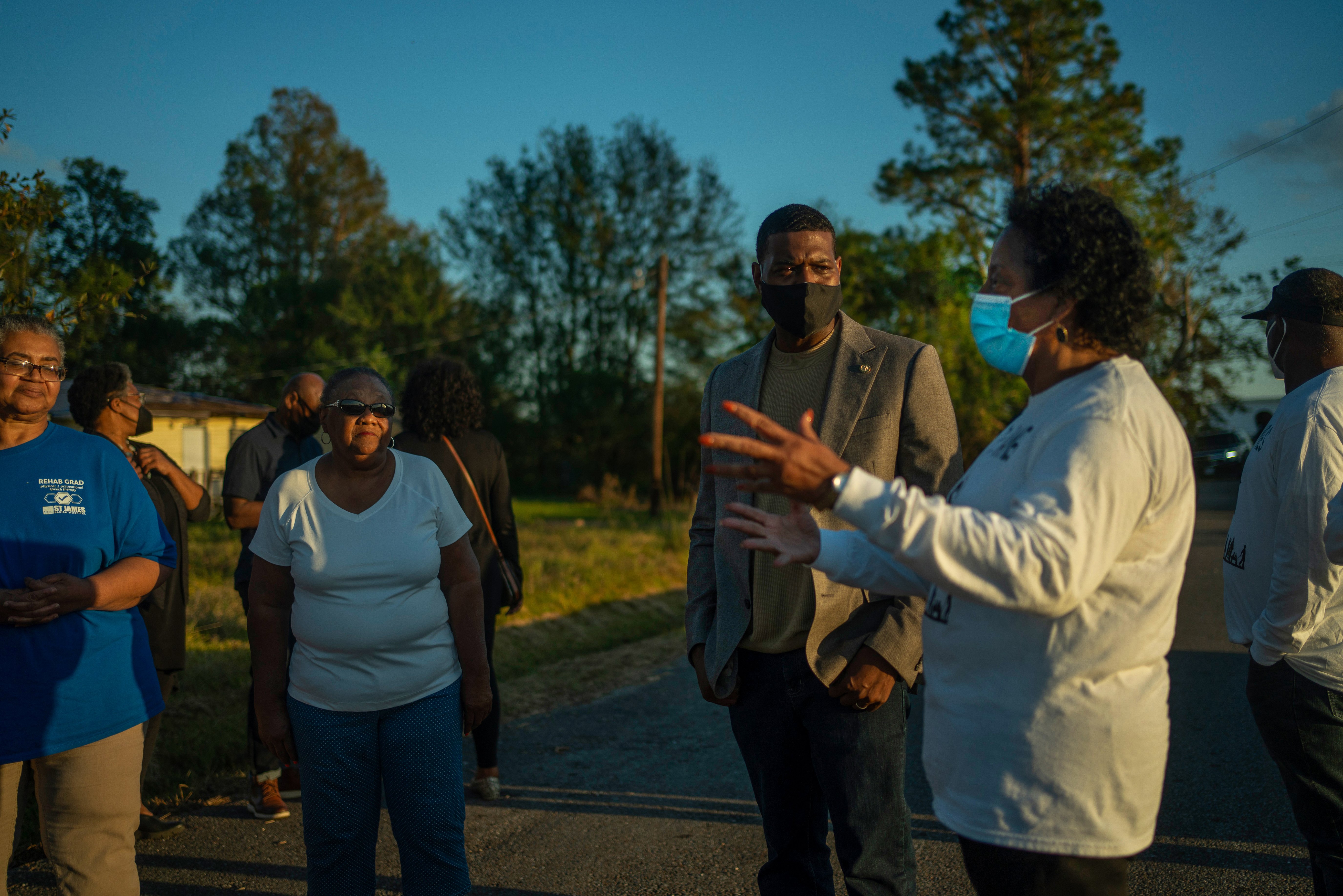 After the morning bus ride, Regan met privately with around a dozen members of the Concerned Citizens of Mossville inside a Baptist church. Carolyn Peters told her neighbors that she could not stop smiling. “I love how attentive he is,” she said.