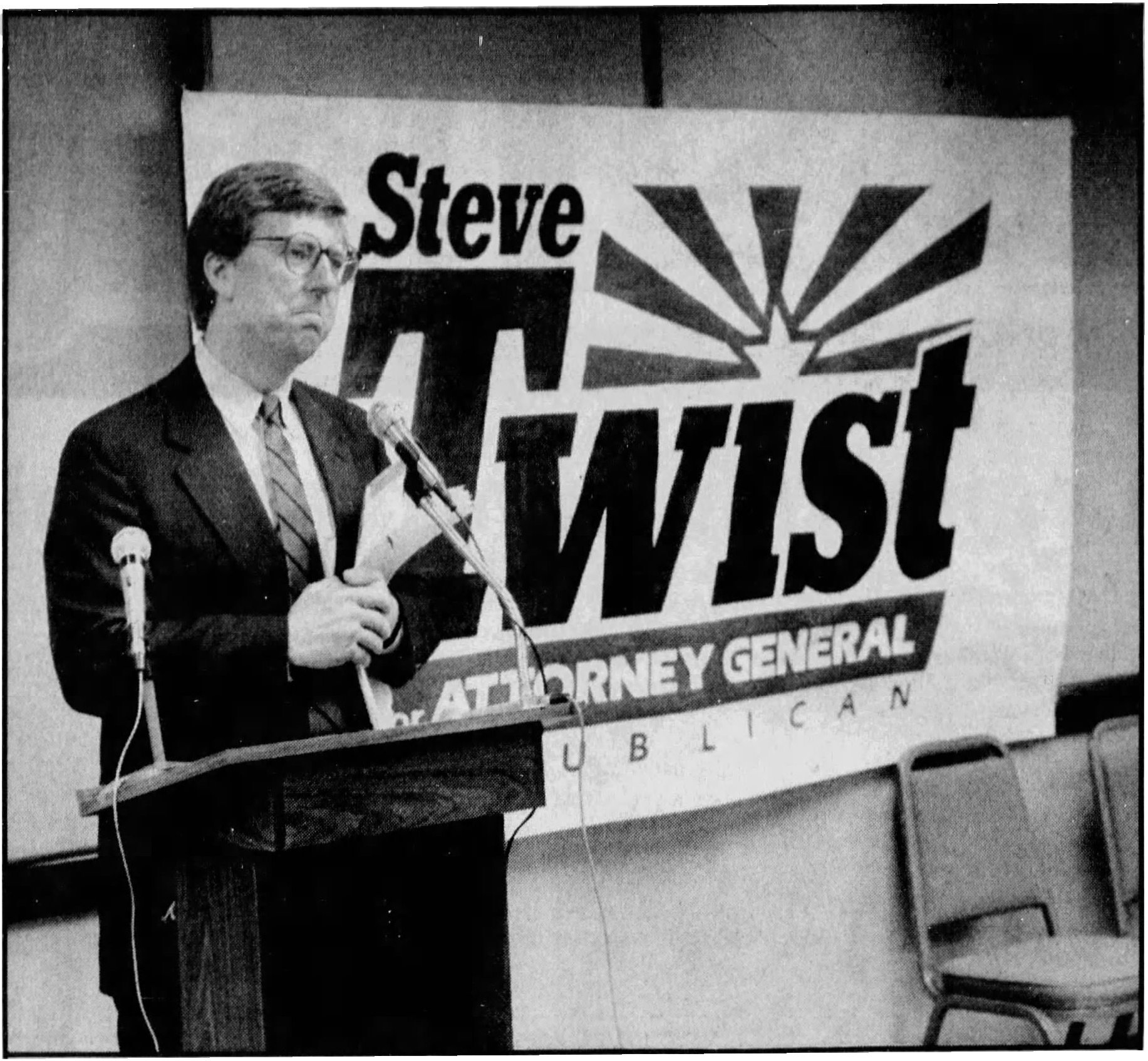 Grant Woods, who died last year, defeated Twist in the 1990 Republican primary for Arizona attorney general. In a 2021 interview with ProPublica, Woods described the candidate he faced as someone who he believed had “decided very early in his life that the best way to provide public safety is to figure out who is committing crimes and to lock them up as long as you can. And I don’t think he’s really changed much since then.”