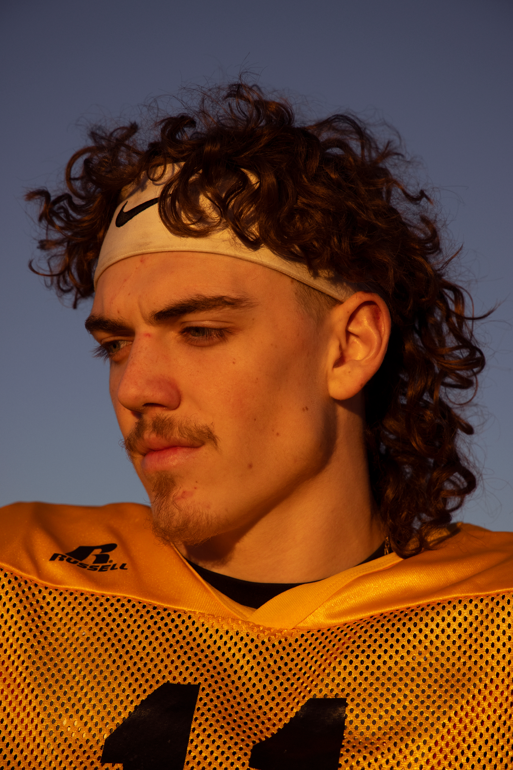 I arrived in Hobbs two days later, just in time for the memorial inside Christian Center Church. The parking lot was jammed with oversized pickups, and the sanctuary was standing room only. The stage was dominated by balloons in black and yellow, the Hobbs High colors, and large white letters and numbers, aglow with lights, that spelled KD 10, Kooper’s jersey number. His home and away jerseys, his school backpack and a school photograph were also displayed. I found an empty space to stand in the back. There were many kids in the audience, and some were wearing raspberry-colored shirts with Kooper 10 written on them. Few people were wearing face masks.