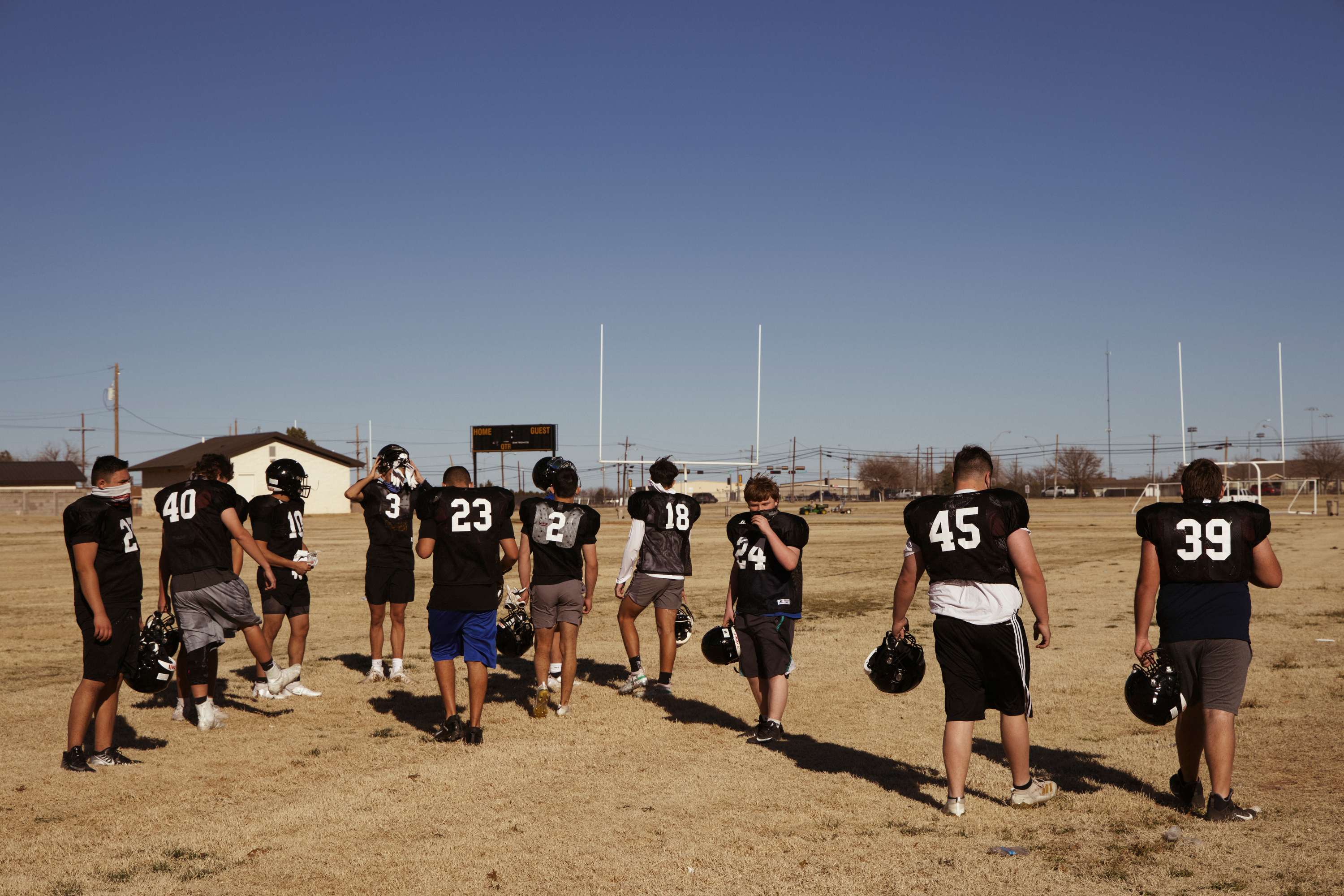 In the pandemic year of 2020, though, the two sides of the state line might as well have been in different hemispheres. Texas’s response to the coronavirus was freewheeling. Most notably, it gave local school districts leeway in deciding whether to open for in-person instruction in August, and in conservative West Texas, many districts seized the opportunity to do so, for all grades, all the way up through high school. Students wore masks in the hallways and administrators did contact tracing for positive cases of coronavirus, but everything else went pretty much as usual, including sports. On Friday nights, high schools still played football, with fans in the stands.