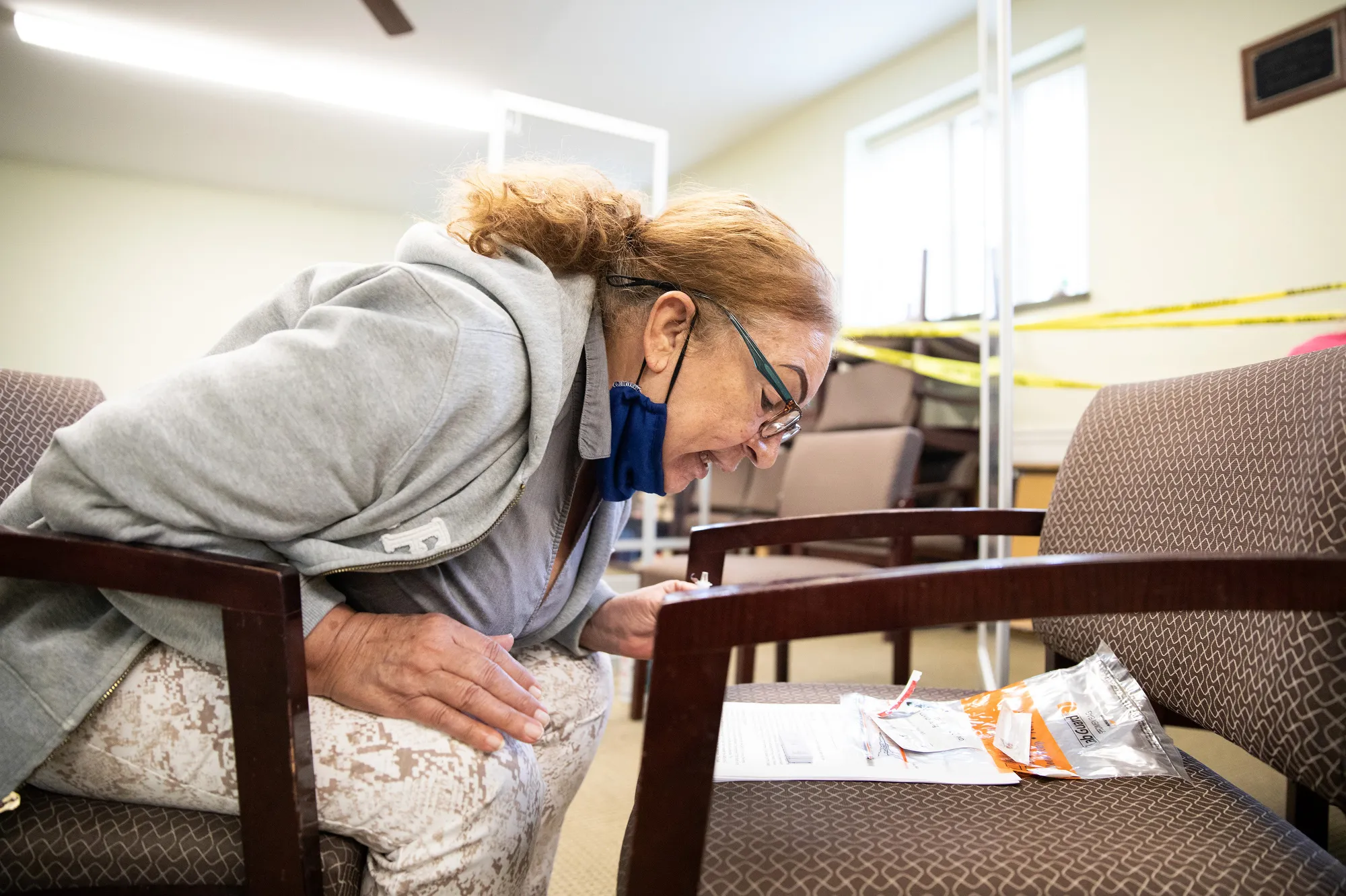The trial began in earnest last week, with study administrators walking newly enrolled subjects through using the tests. In a building reserved for elderly and disabled people, residents entered with walkers and in flip-flops to learn how to swab their noses, put the swabs in a vial of solution, squeeze a few drops onto a pad and wait anxiously for the single line to appear that would indicate a negative result.