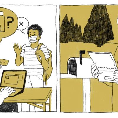 Después de graduarse en 2019 con una licenciatura en ciencia cognitiva y un grado menor en estudios chicanos/as-latinos/as, Sergio volvió a casa por un año para ayudar a pagar las cuentas antes de solicitar admisión a escuelas de medicina. Aunque había anhelado encontrar un empleo en el campo de la salud, sintió que necesitaba aceptar la primera oferta que recibiera, que fue confirmar precios con proveedores para una empresa que vende productos industriales por internet. Se dijo que solo era temporal y que, en el ínterin, estudiaría para los MCAT (exámenes para la escuela de medicina) y haría trabajo voluntario como intérprete de español en una clínica gratis en Chicago.