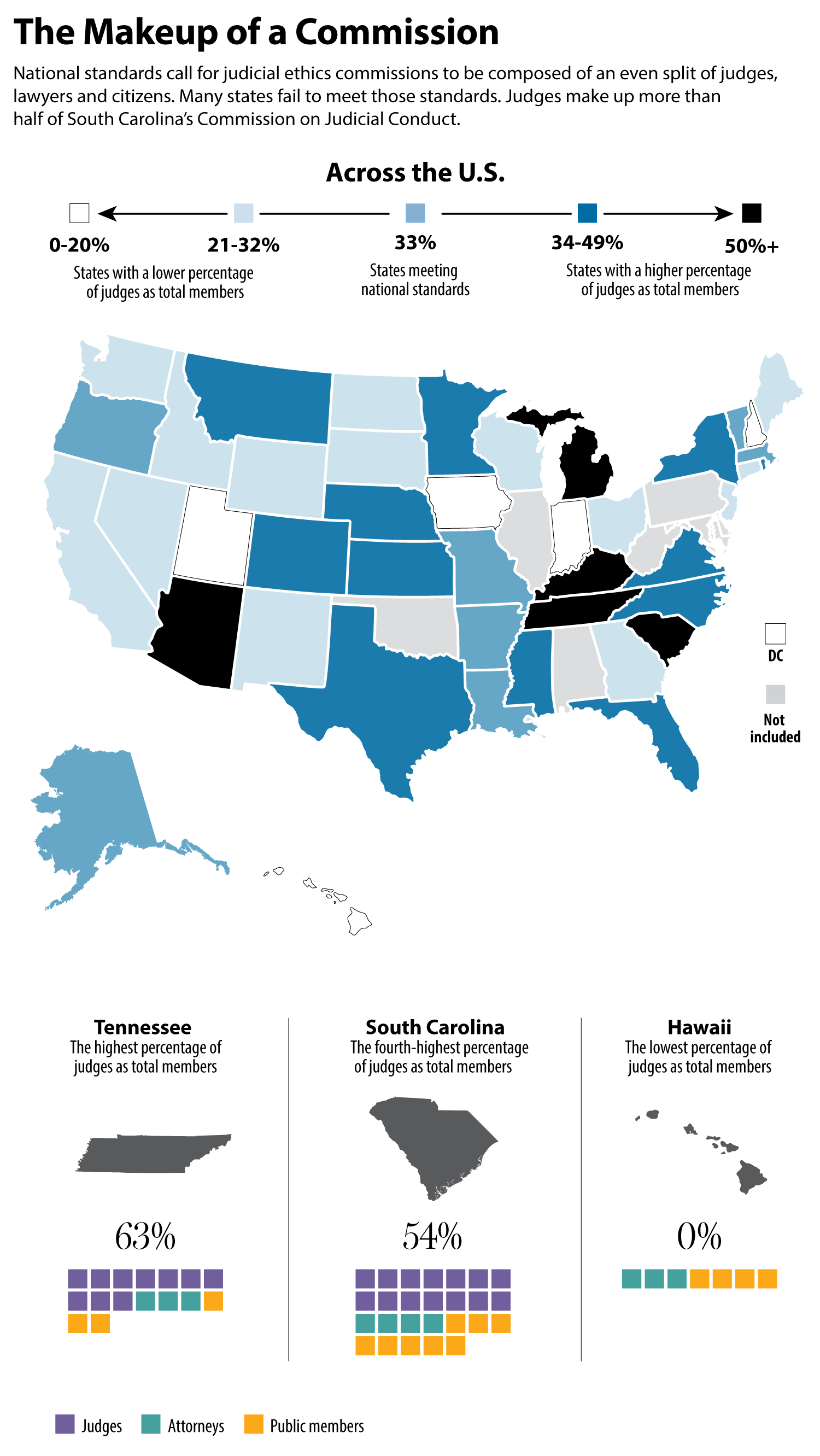 The Post and Courier and ProPublica analyzed public disciplinary actions imposed by judicial commissions and supreme courts in all 50 states.