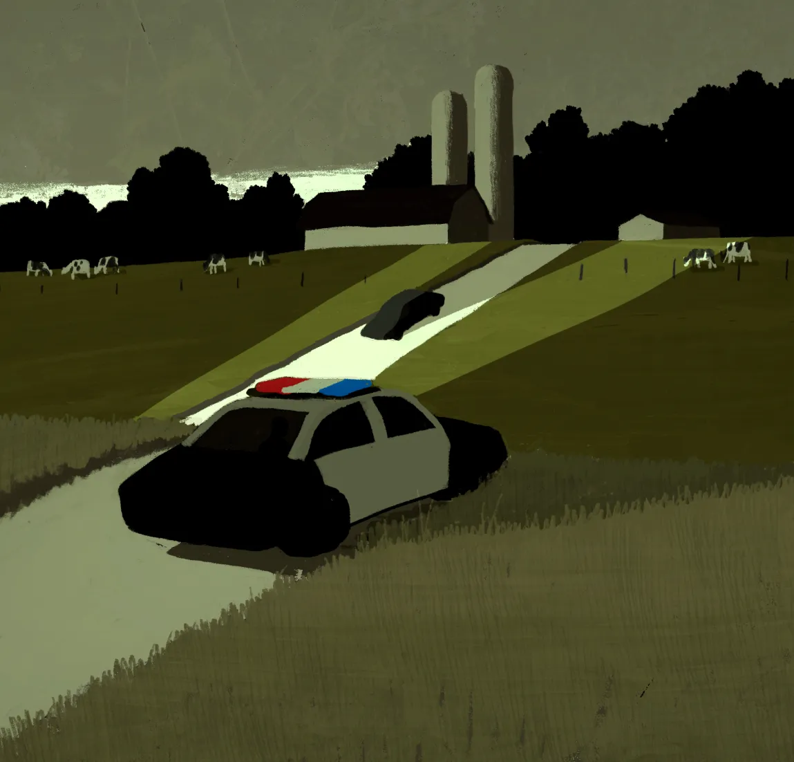 Un agente del sheriff del Condado de Buffalo había estado estacionado en frente de la granja observando el tráfico en una calle donde el límite de velocidad es 35 millas por hora. El agente escribió en su informe que se fijó en un coche avanzando “a una velocidad lenta”, y después verificó la placa. El chequeo de los archivos mostró que el dueño del coche no tenía licencia, así que el agente lo detuvo.