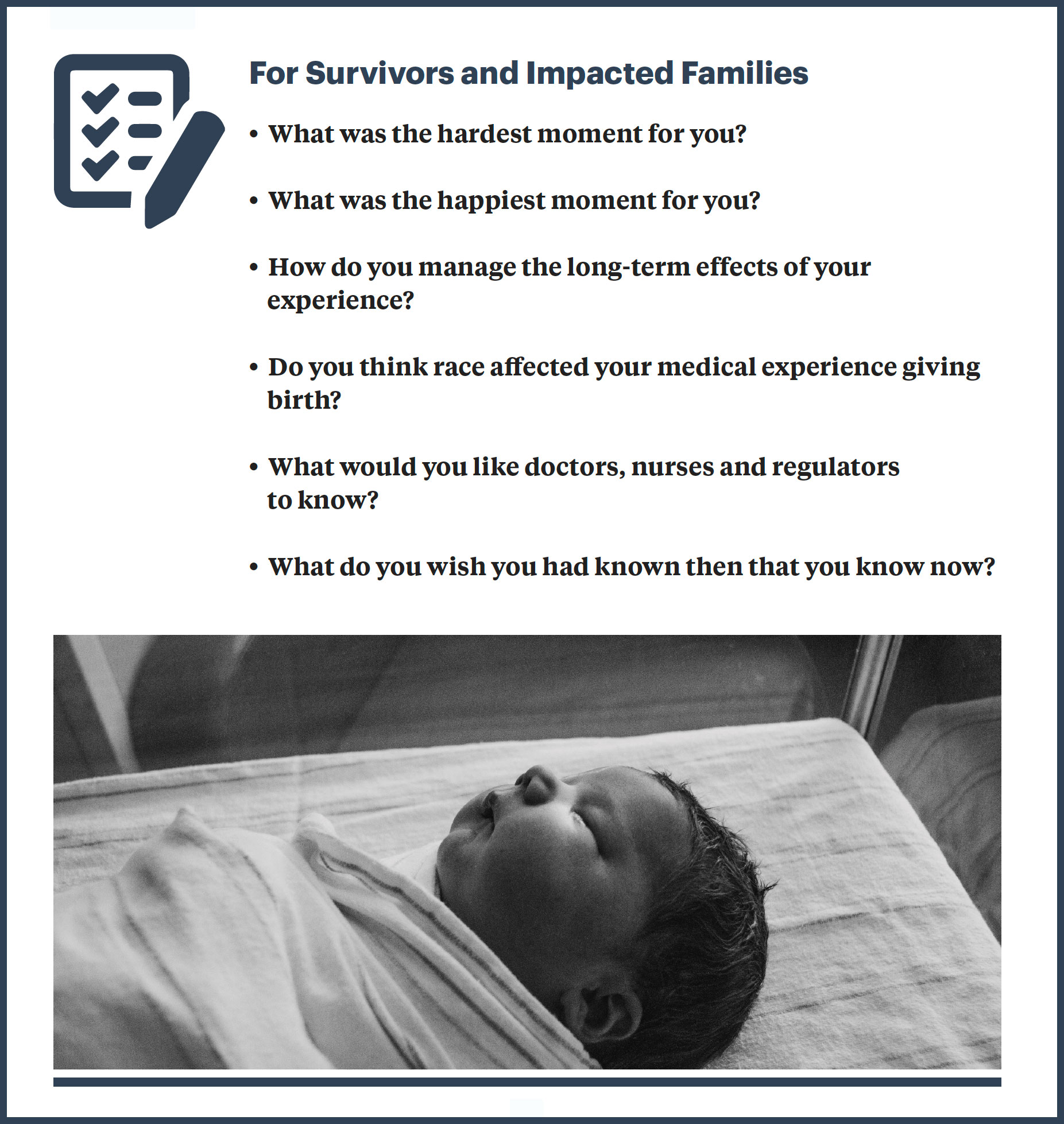 As we have continued to dig into this problem, we have focused on the personal stories of affected women and their families. Thousands of people have shared their experiences with us since our initial callout in February, and those stories hold critical lessons for hospitals, regulators and policymakers. Making such experiences visible and transparent — lifting them up not only as individual tragedies, but as part of a public health crisis that endangers all women — remains a vital aspect of this project.