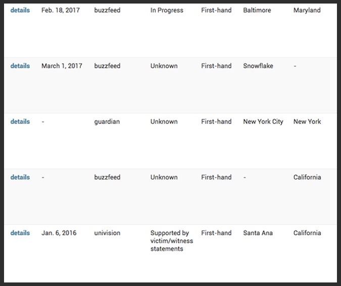 The tips we gather are available to participating journalists — helping them to do their job and produce stories they might otherwise not have found. ProPublica and our partners have reported more than 160 stories, including pieces about hate in schools, on public transportation and on the road, in the workplace, and at places of worship, and incidents involving the president’s name and policies, to name just a few. Plus, each authenticated tip acts as a stepping stone for other partners to build on their reporting.