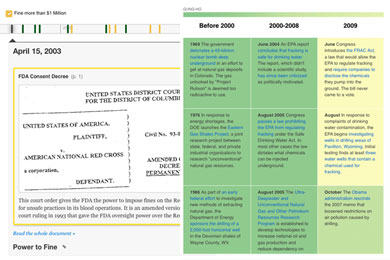 Over the past few weeks we’ve done a lot of thinking about timelines. We made one that recounted the history of FDA fines levied on the Red Cross, another one that traced the changing government approach to fracking, and finally one that described the day-by-day unfolding of the Komen/Planned Parenthood debacle. Each was pretty different and went through multiple iterations before arriving at its final form. Here’s the story behind each one — the thinking, planning, and building of each timeline, complete with some of the approaches we rejected along the way.