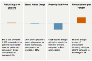 Never-before-released government prescription records shows that some doctors and other health professionals across the country prescribe large quantities of drugs known to be potentially harmful, disorienting or addictive for their patients. And officials have done little to detect or deter these hazardous prescribing patterns. Medicare’s failure to monitor what doctors are prescribing has wasted billions of taxpayer dollars on excessive use of brand-name medication and exposed the elderly and disabled to drugs they should avoid.